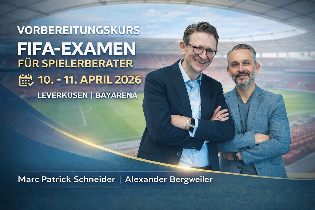 Unser Kurs bereitet Sie gezielt auf die FIFA-Prüfung für Spielerberater vor – mit dem Know-how aus der Praxis und aktuellen Prüfungsinhalten.